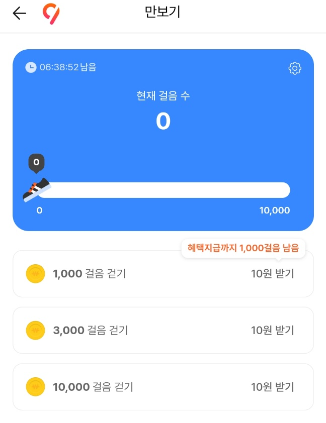 ✅ 하루 1만보를 걸으면 총 30원을 적립해 줍니다.