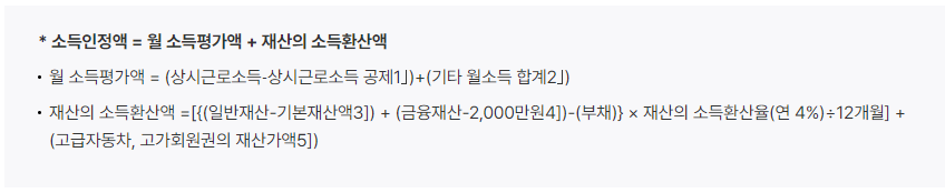 ㆍ본인과 배우자의 소득과 재산을 합산한 금액이 선정기준액 이하인 자