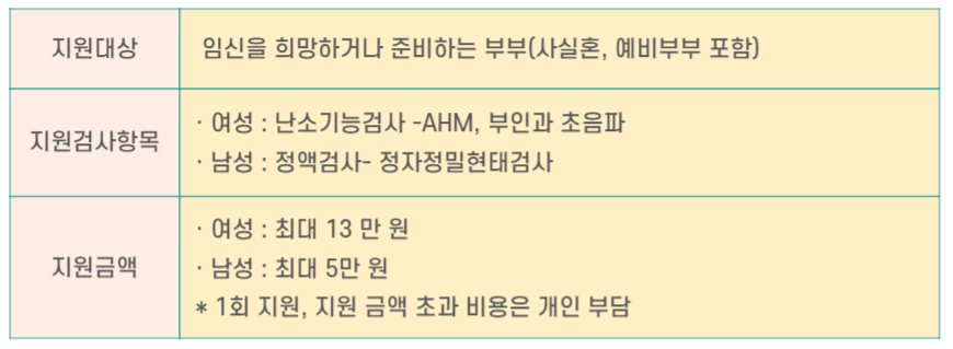 * 서울시 자체사업(서울시 남녀 임신준비 지원) 시행 중으로 서울시민은 주소지 관할 보건소에 문의하세요