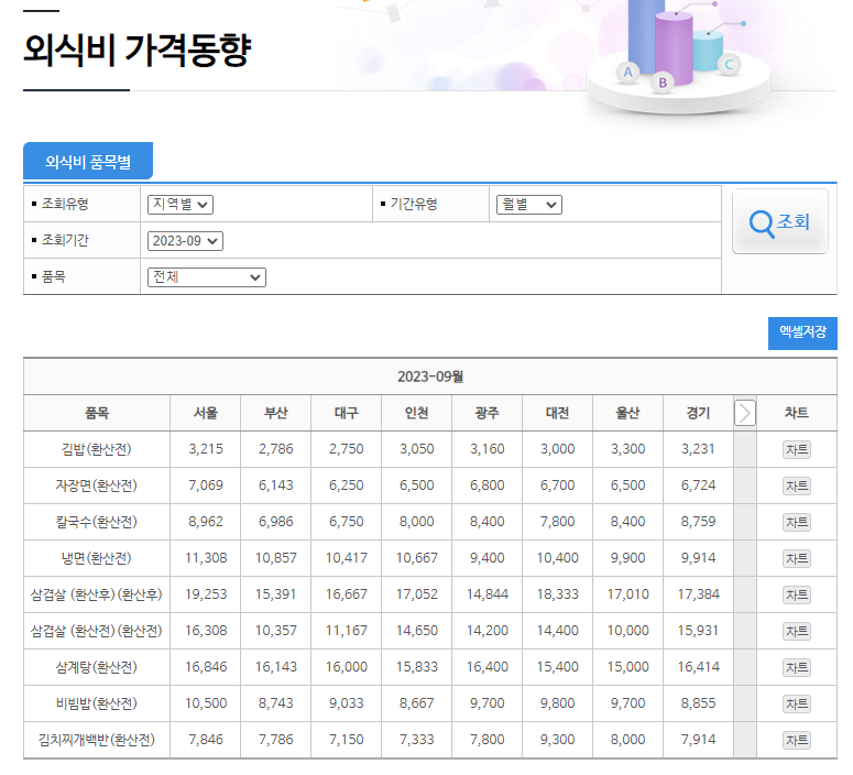 4) 외식비도 비교 가능합니다.
